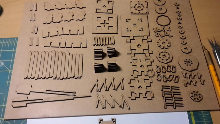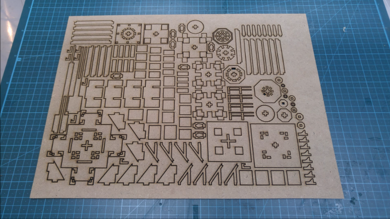 300X400mm MDF 2.8T 한 장에 모두 140개의 파츠로 구성됩니다.