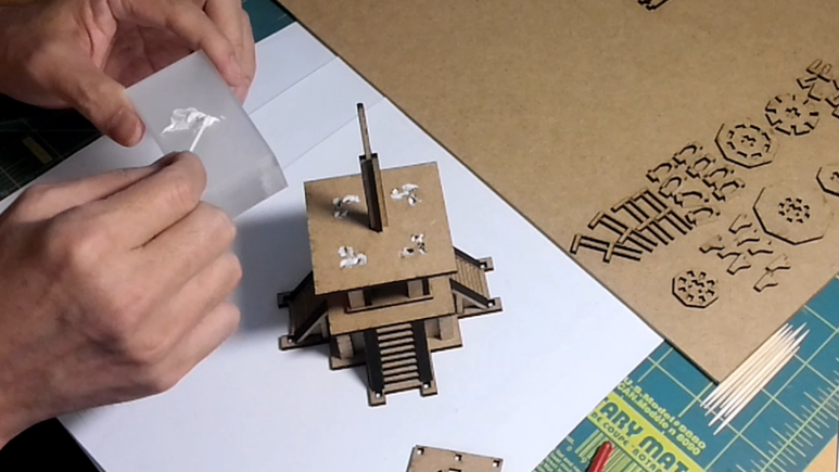 조립에 앞서 16개 파츠의 모서리 겹침 부위를 칼로 모따기해줍니다.